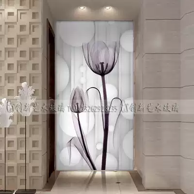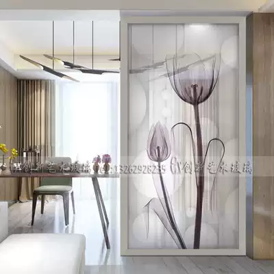 Custom art glass partition screen European style decoration living room entrance cabinet TV background wall carved frosting process