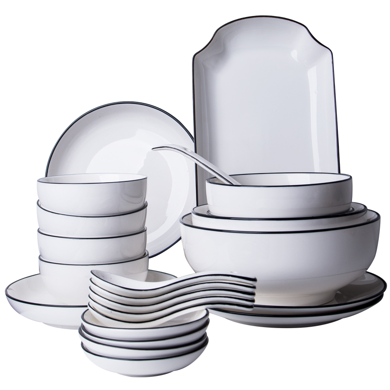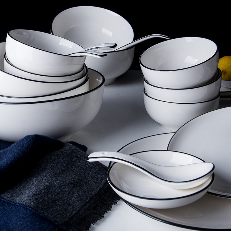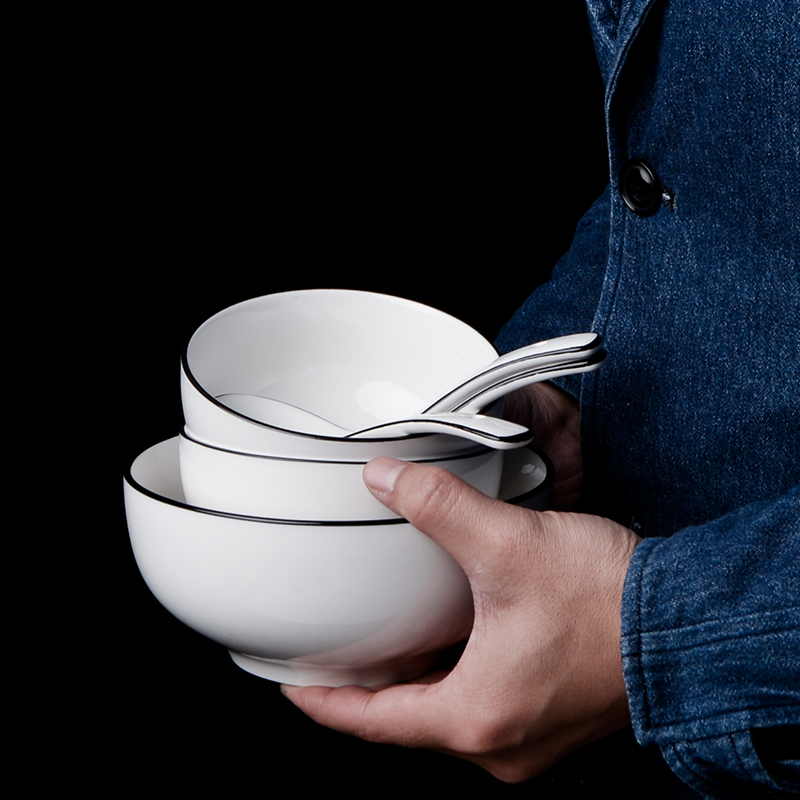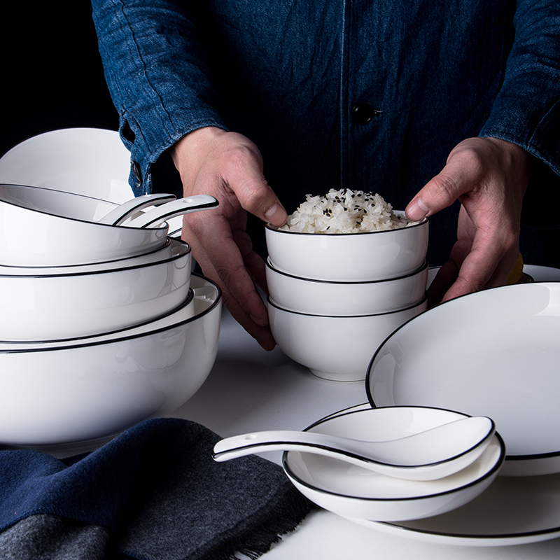 Nordic creative simple household eating ceramic rice bowls 4 6 10 combination tableware sets can be microwaved