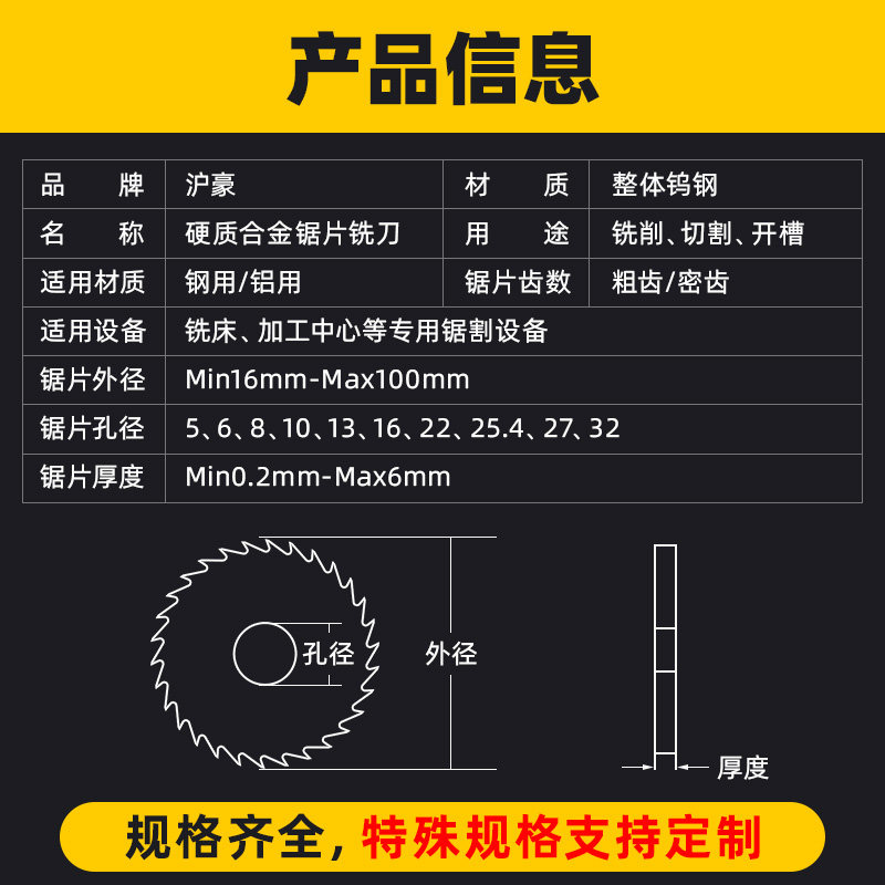 Huhao overall alloy tungsten steel saw blade stainless steel hard milling cutter outer diameter 55 aperture 16 thickness 0 2-6