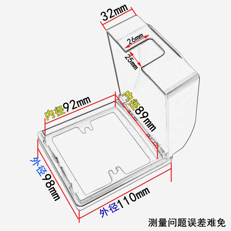 Type 86 waterproof socket box transparent cover Household socket panel protective cover 86 splash-proof box bathroom waterproof box