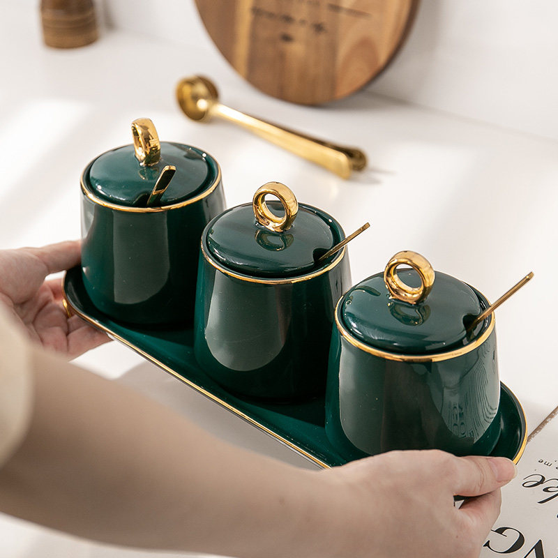 Green gold seasoning jar suit (two flavors) send the seasoning spoon two green gold seasoning jar suit (three taste) send the seasoning spoon three green gold seasoning jars (blindly) to send the seasoning spoon one