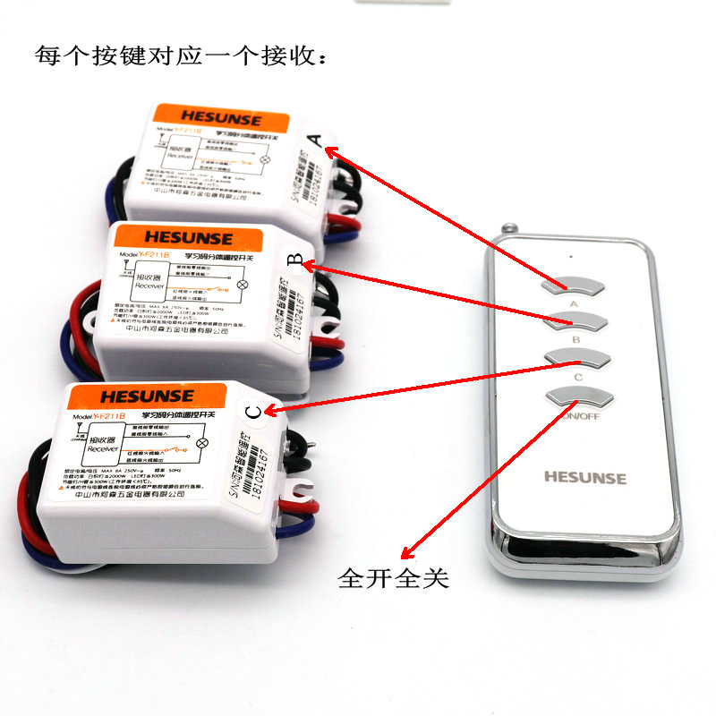 Home Two-type one-drag multi-way wireless remote control switch 220v remote control lamp single-way remote can wear wall