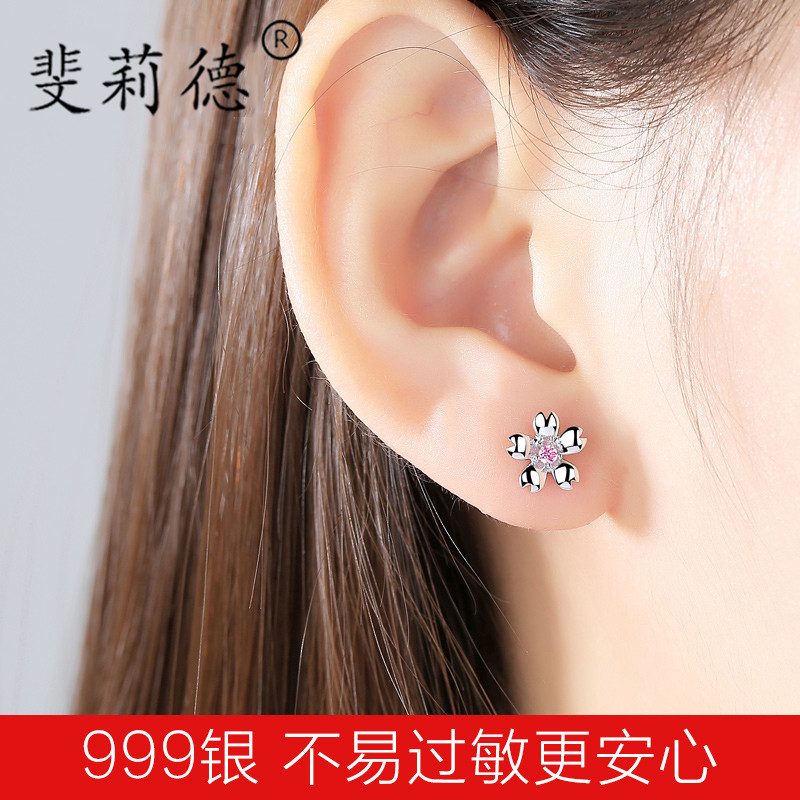 Young Girl Hearts ins Ear Needles Women's Pure Silver 2019 Pop Superfairy Fresh Temperament 100 Hitch A slap in the face