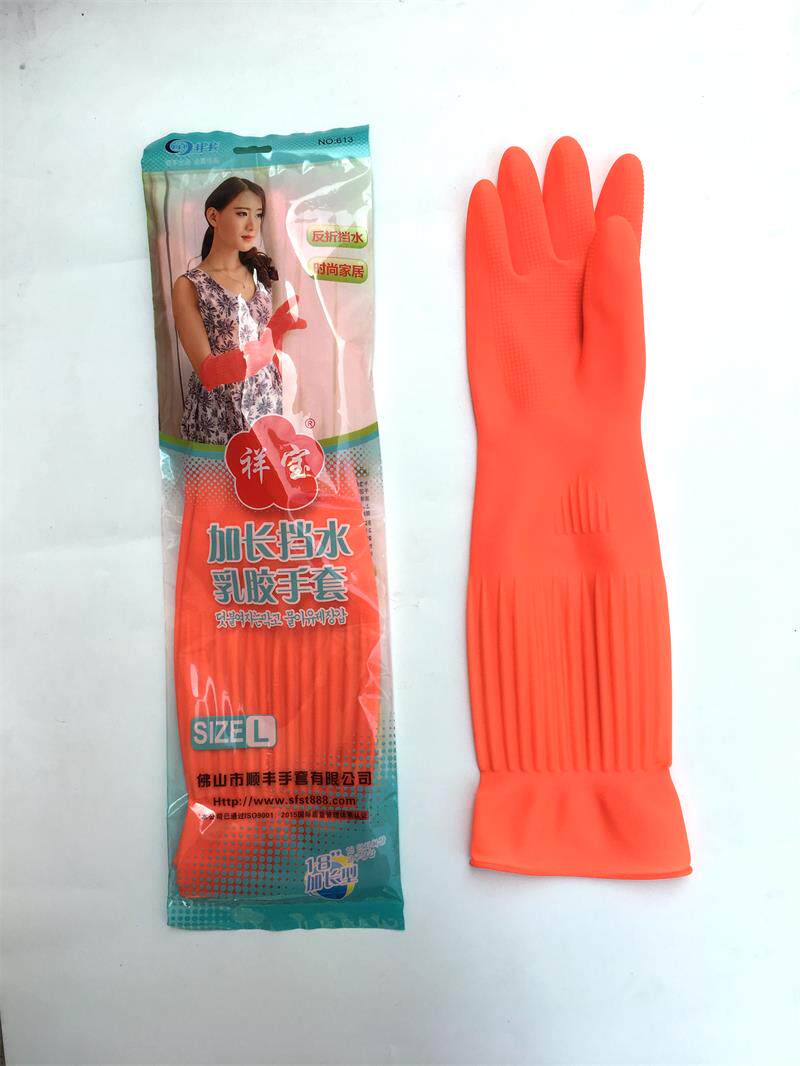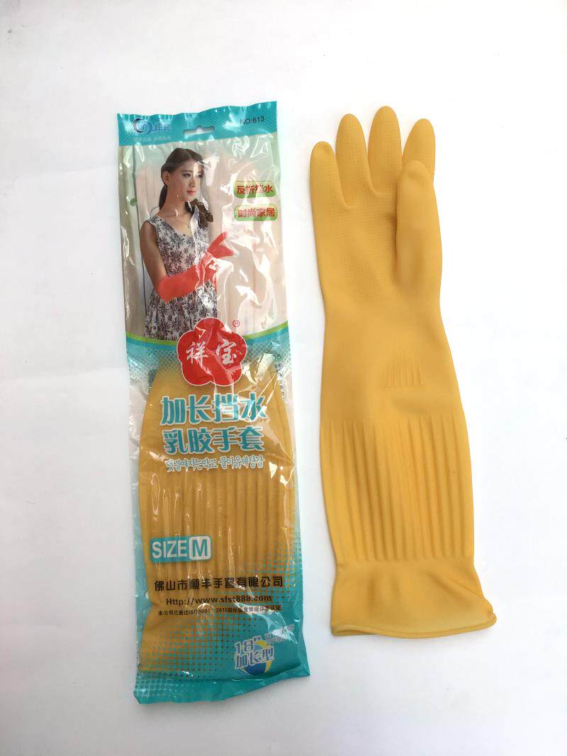 Xiangbao 613 extended water retaining latex gloves dishwashing rubber waterproof and durable clean bundle mouth rubber gloves