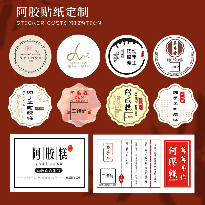 Agu cake gift box sticker custom logo QR code hand-packed kraft paper glass bottle sticker label