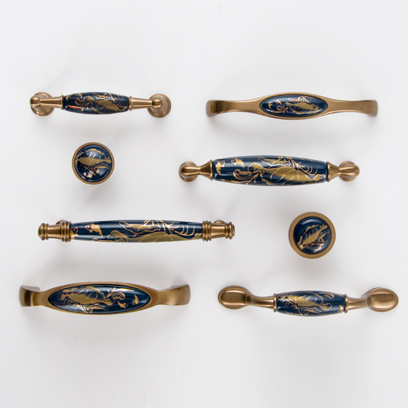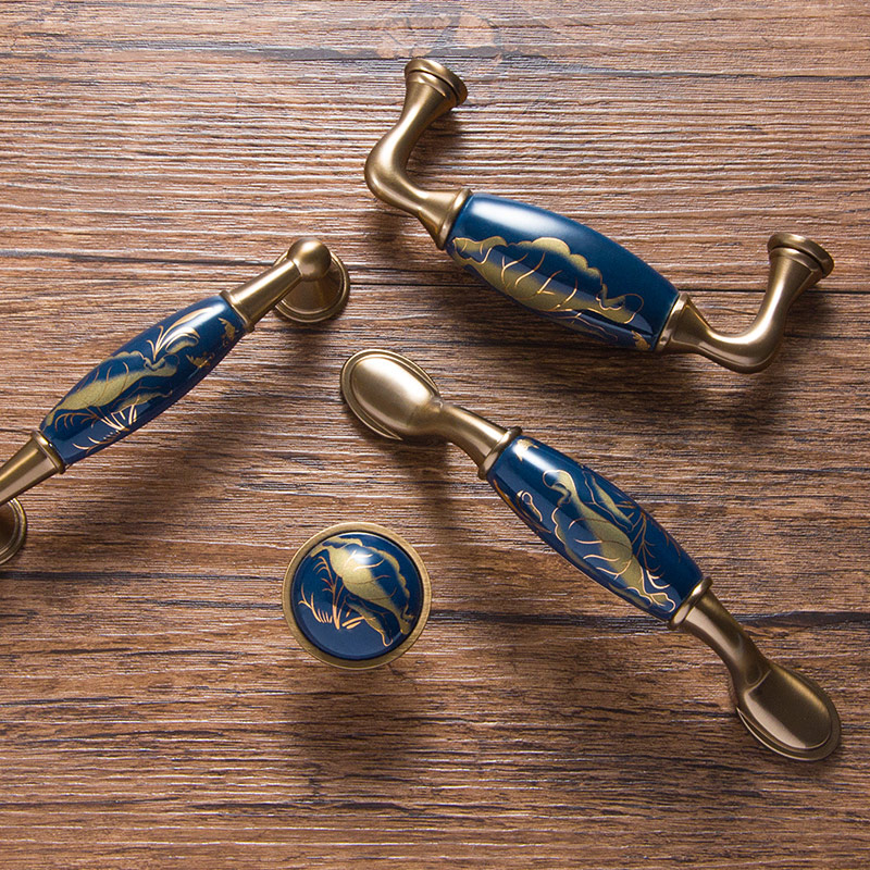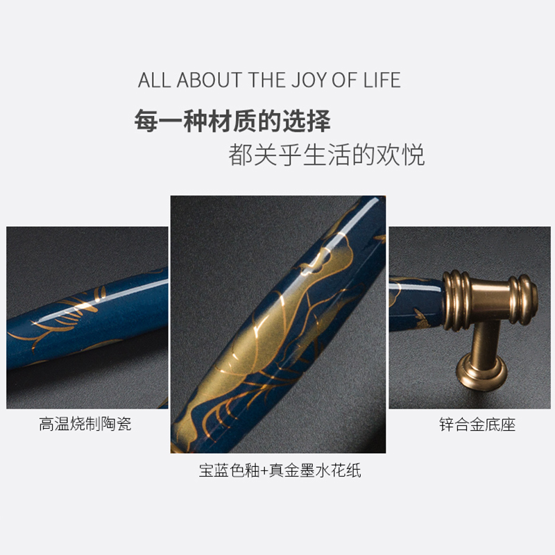 Chinese cabinet integral cabinet ceramic handle European cabinet door handle new Chinese wardrobe door drawer luxury gold handle