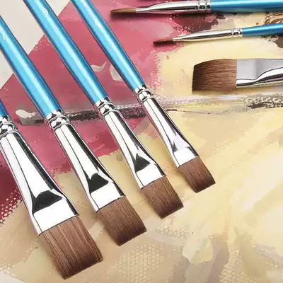 Huahong hwahong926 Flat head watercolor pen original horsehair professional gouache art brush set composition oil painting acrylic hand-painted blue long rod pen brush horsehair pen hair