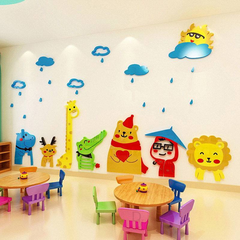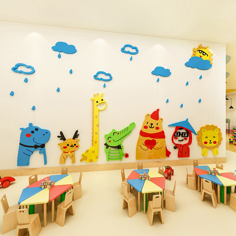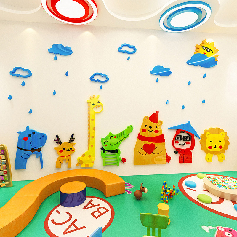 Cartoon animal 3d acrylic three-dimensional wall stickers tutorial class early education center classroom environment layout children's room decoration