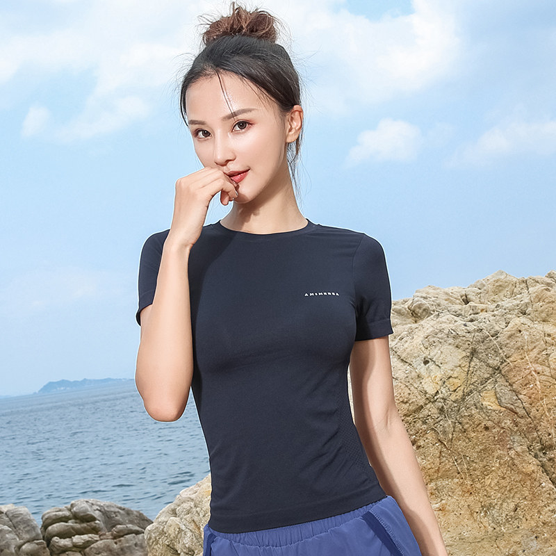 2021 Summer new stylish round collar Supper sports blouses Fitness Running Display Lean sweat and breathable T-shirt Female