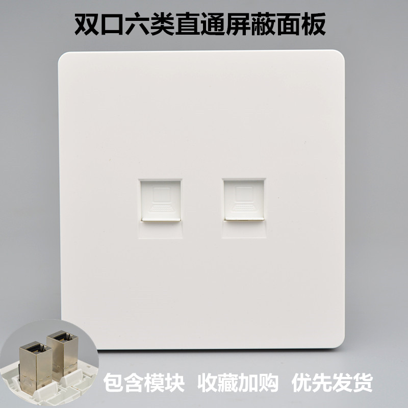 Dual - port straight through six category network wire port socket 86 gigabit shielded computer module two - digit network double - pass head panel