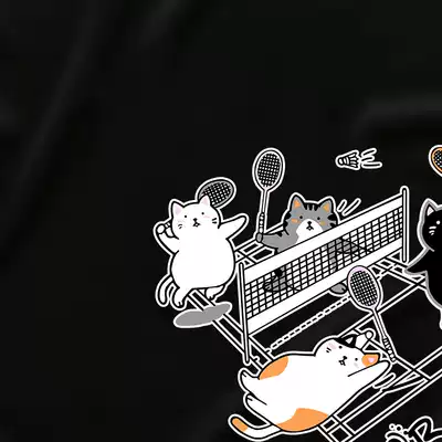 Cat men's badminton culture shirt Women's quick-drying short sleeve shirt sports ball clothes summer T-shirt large size cartoon Black