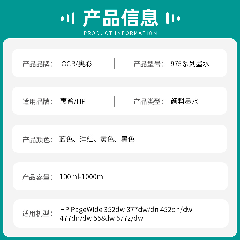 OCB for Hewlett-Packard HP 975X ink hp 452dw 477dn 552dw 993X ink 577z 775dw 774