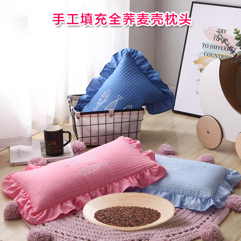 Pure buckwheat pillow core children's full buckwheat skin hard pillow adult single student health care cervical spine Qiao Mai pillow