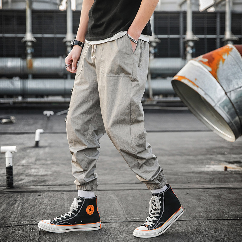 Men's overalls summer thin casual sports tide Pai Gow split feet new pants men's Korean version of the trend loose