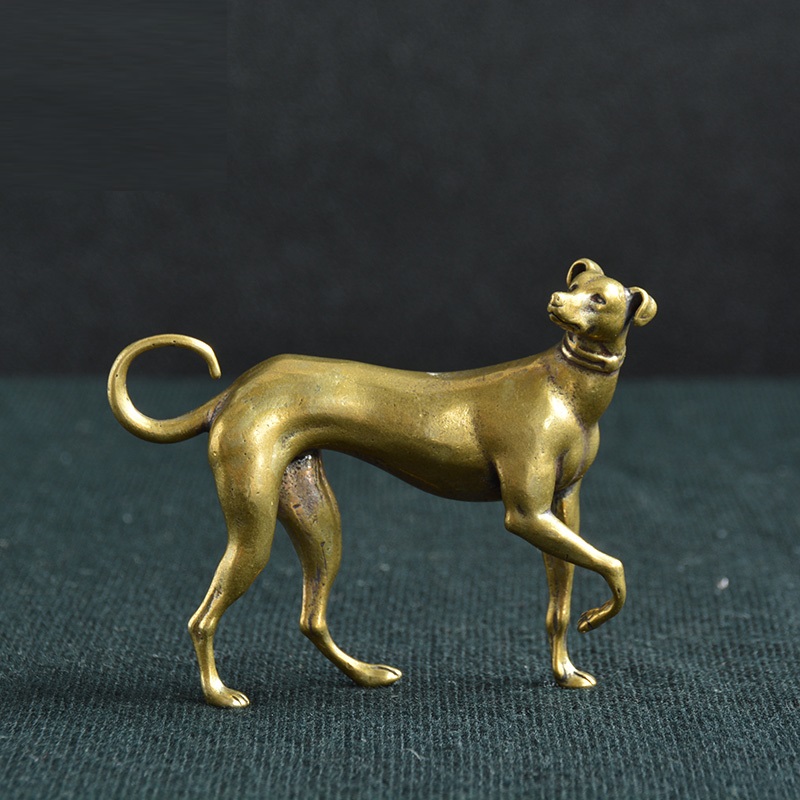 Pure copper brass dog handle pieces Zodiac dog tea pet text play Wang Cai Wang Yun small ornaments