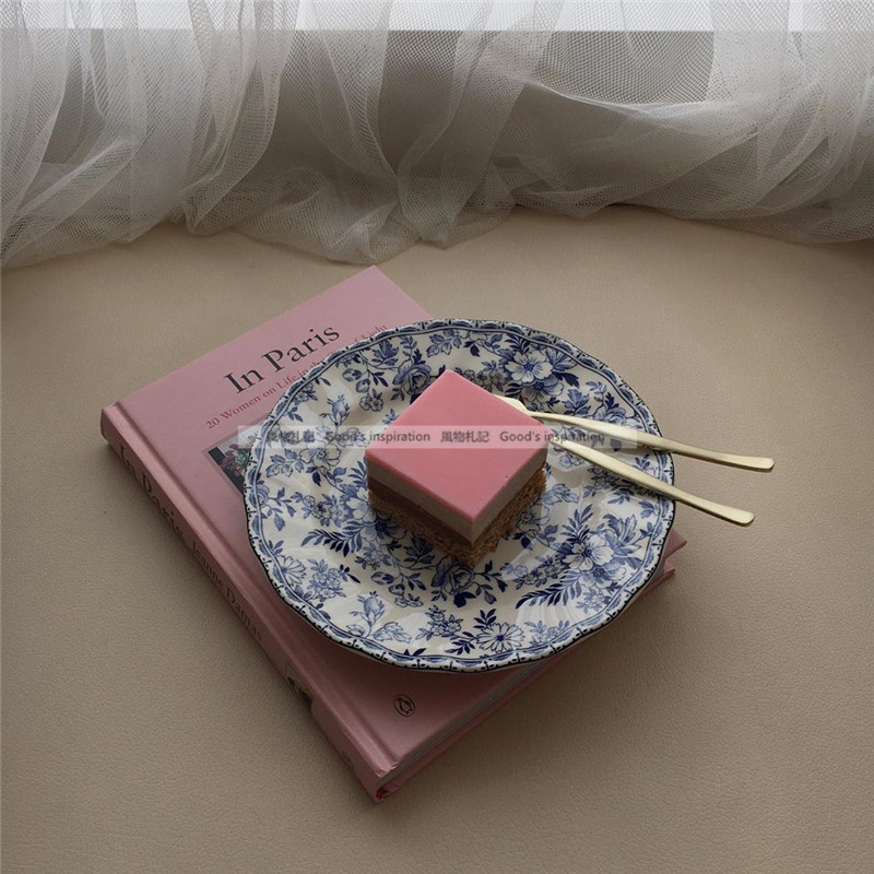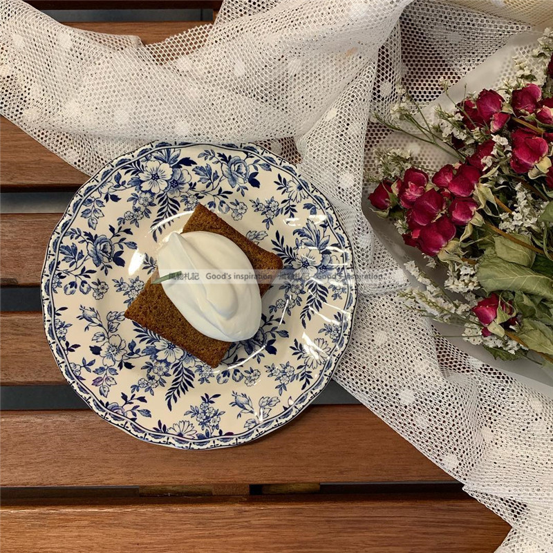 Foreign trade Korea blogger's same chic blue green flower porcelain retro patterned floral ceramic cake fruit saucer tray