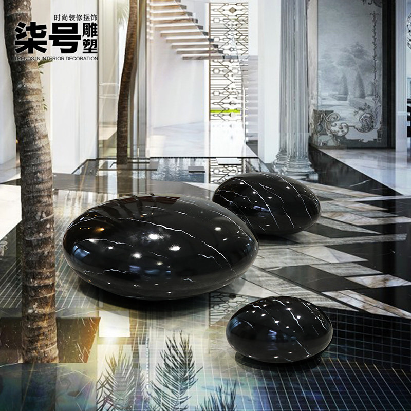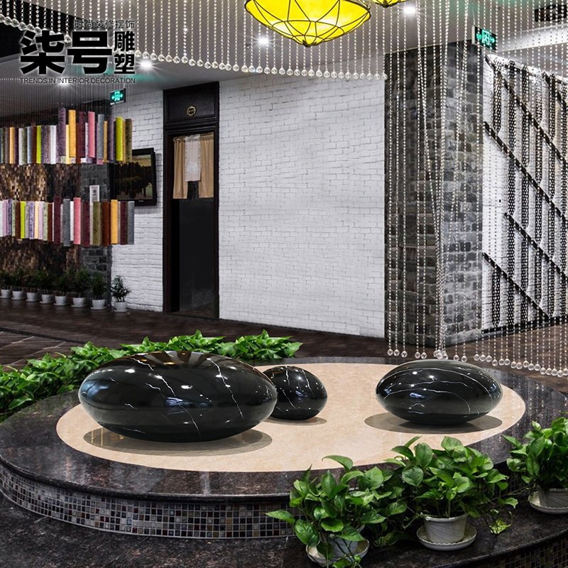 Mall Center Large Floor Decoration Black Goose Pebble Head Round Sculpted Glass Fiber Pendulum Piece Artwork