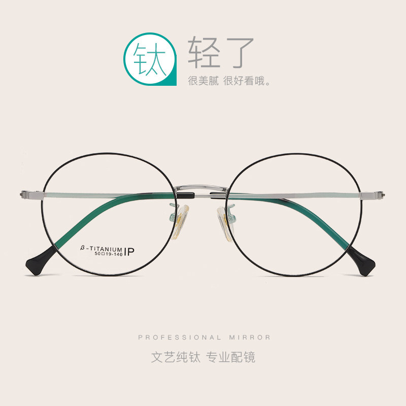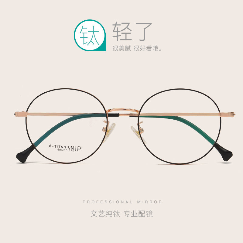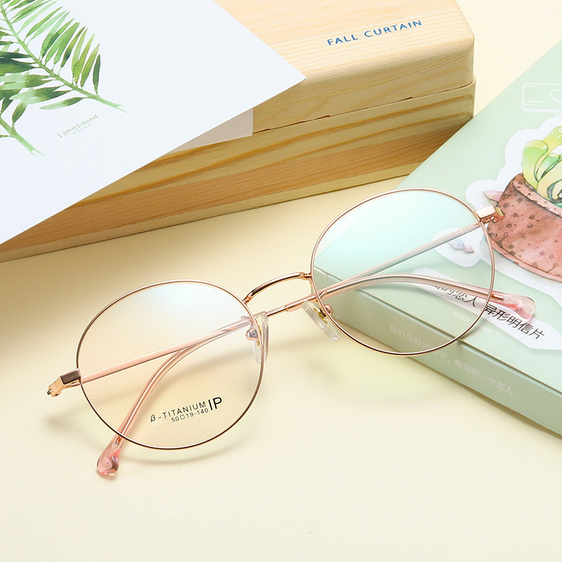 Vintage pure titanium finished glasses female myopia with power glasses frame Korean version of the round face eyes net red glasses frame