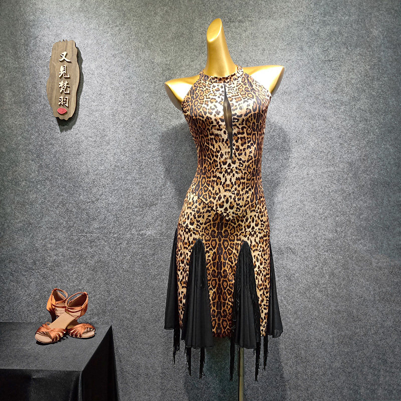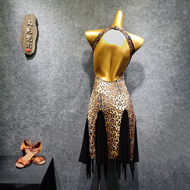 See again Van Gogh Latin Dance suit Adult women's new performance Sexy Dew-Back Ocean Dress Flutskirt w356