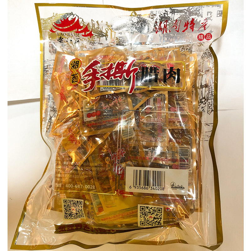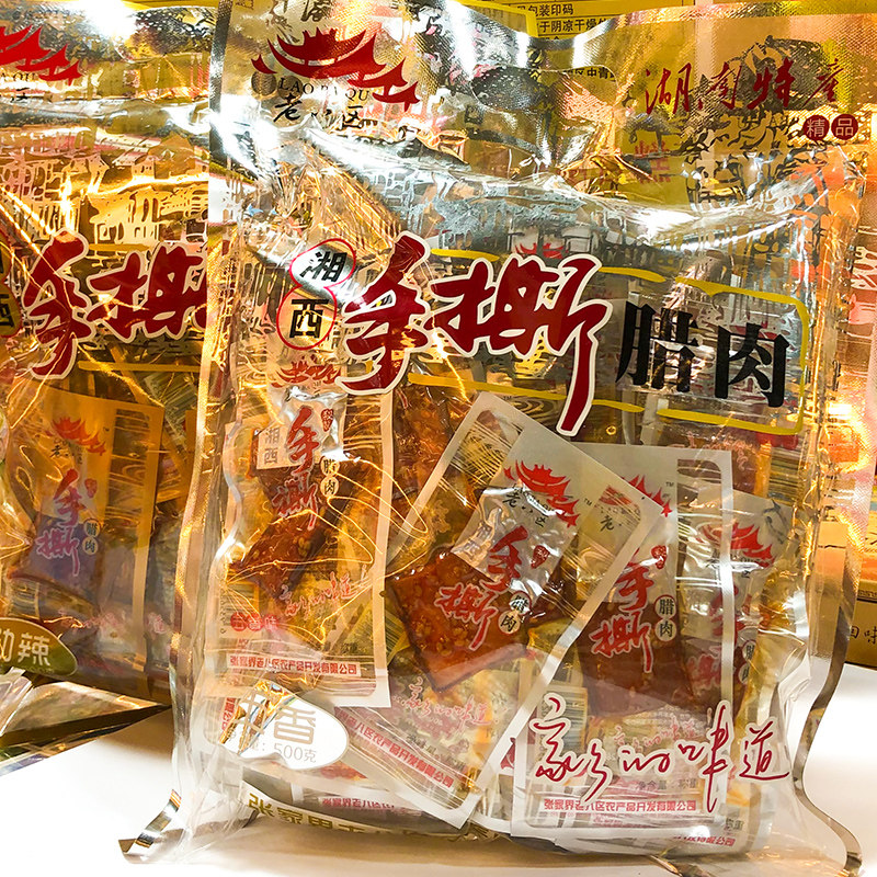 Old Eight District Hand-torn Bacon Zhangjiajie Hunan Specialty Xiangxi Bacon Open Bag Instant Spicy Five-Spice Pack