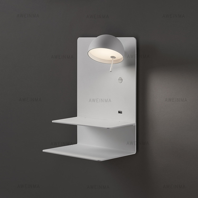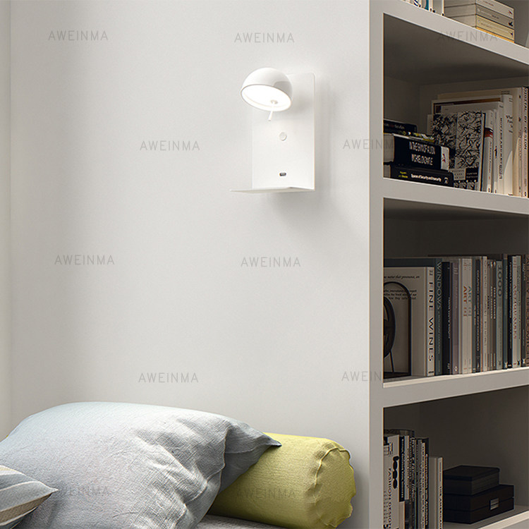 Danish design Nordic led white bedside wall lamp modern minimalist usb charging bedroom guest room rotating wall lamp