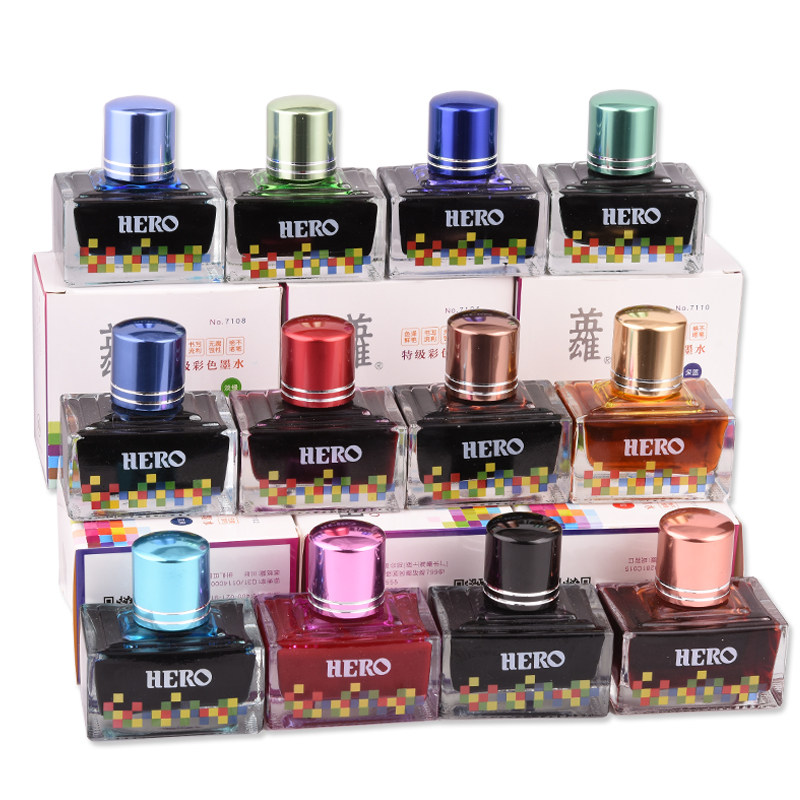 HERO Hero Pen Ink Paint Type Dye Type Classic Ink Carbon Non-Carbon Unblocked Pen Color Ink Black Blue Black Red Students With Ink Office Pen Ink