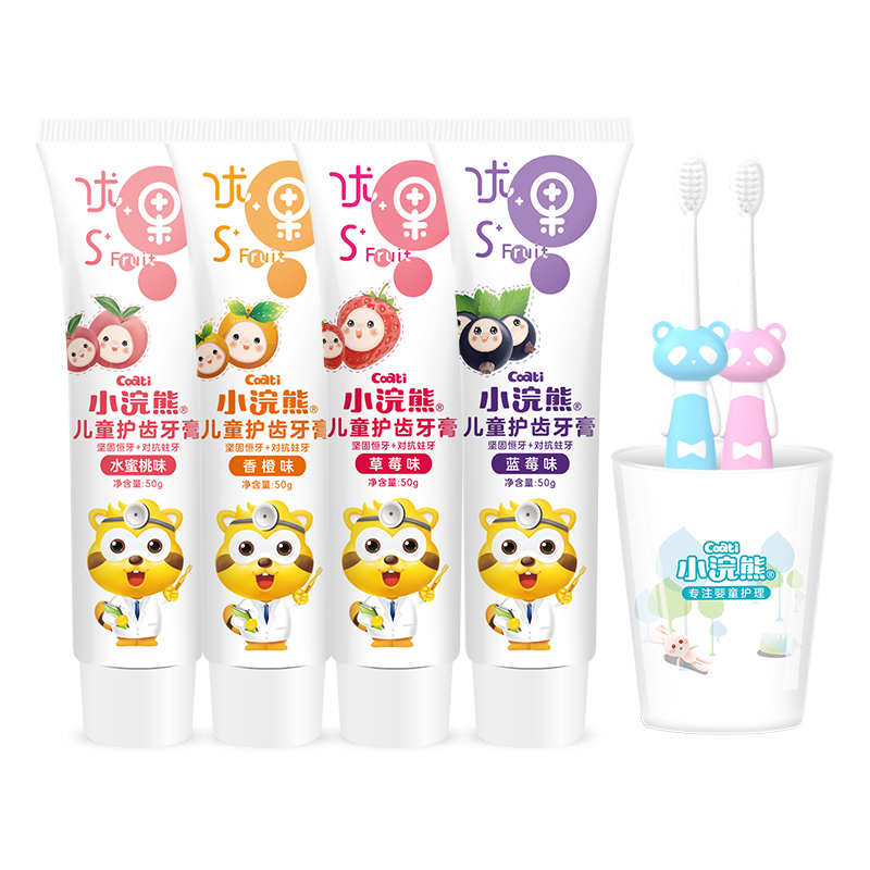 Little Raccoon children's toothpaste set 4 can swallow 3-6 babies 12 years old fluoride-free toothpaste Tooth replacement period fruit flavor