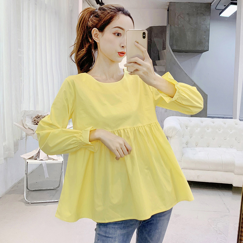 Pregnant Woman Autumn Clothing T-shirt Long Sleeve Han Version Pure Cotton Gestation Woman Dress Shirt Doll Jersey Spring Short blouses Two suits