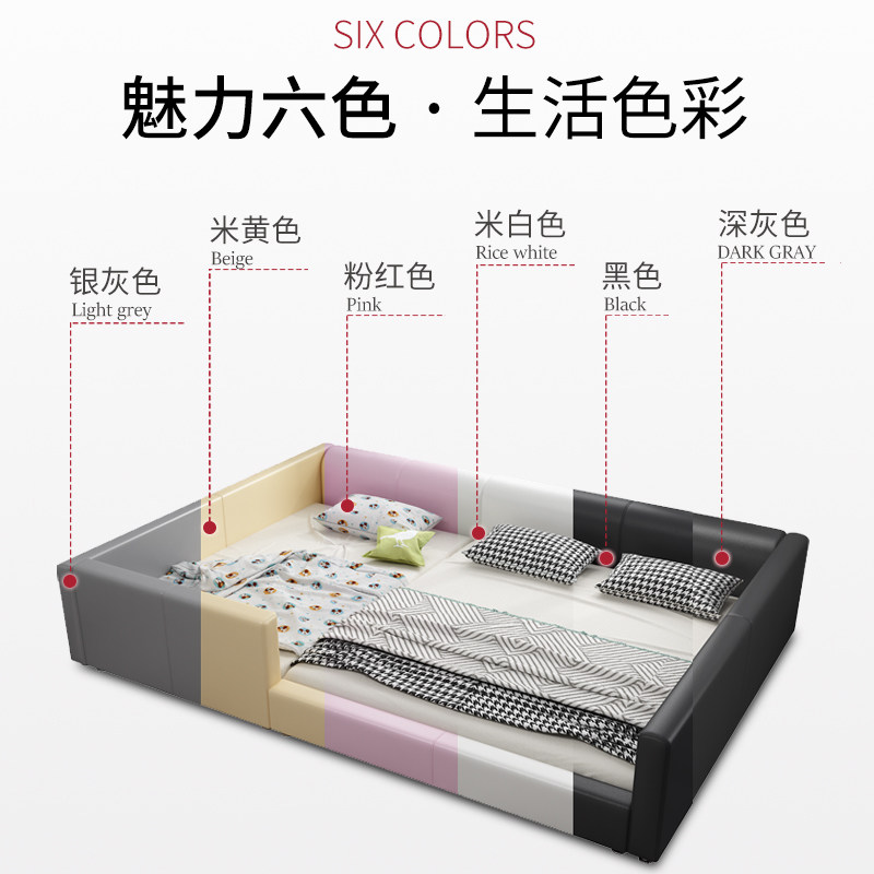 Smart light Tatami bed Double bed Simple modern leather bed Master bedroom Parent-child bed 2 2 meters leather bed Wedding bed