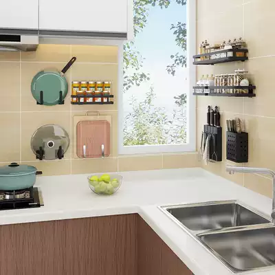 Pot cover holder wall hanging non-perforated kitchen rack household storage layer rack multi-functional cutting board cutting board case shelf