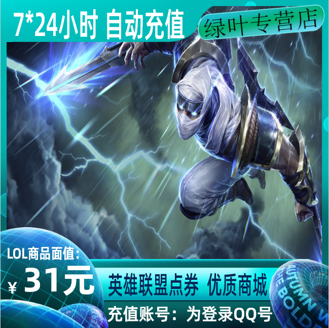 Tencent game LOL coupons) League of Legends 31 yuan 3100 coupons point card) automatic recharge) instant credit)