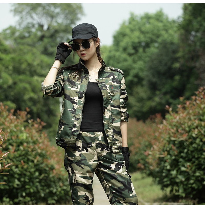Spring and autumn camouflage suits men's and women's pure cotton thickened wear-resistant camouflage work clothes training work military training clothes