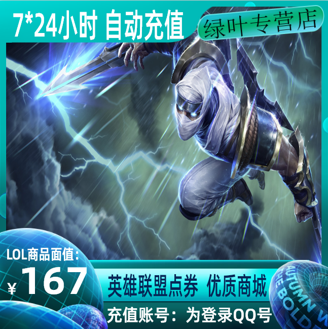 Tencent Game LOL Point Voucher) Hero League RMB167 16700 Points Voucher Counting Card Automatic Recharge) Immediate to account
