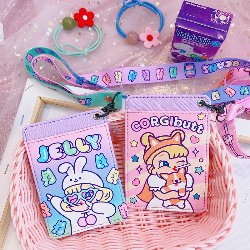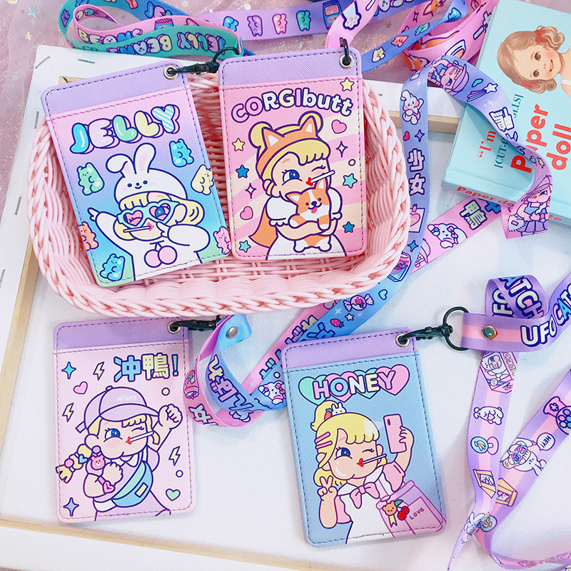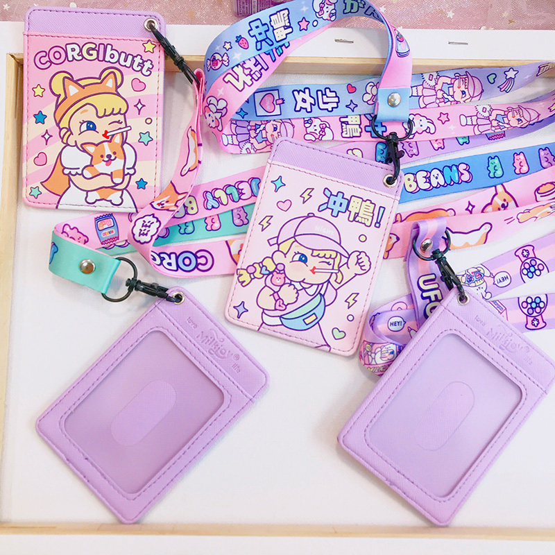 Korean version of the small fresh cartoon cute student hanging neck card set Traffic access control card bag rice card protection card cover with lanyard