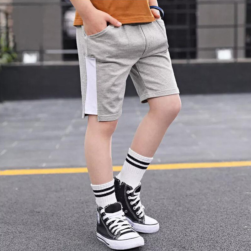 Summer style patchwork white half pants gray Summer style pocket color stitching shorts gray Summer style pocket color stitching shorts navy blue Summer style white patchwork pants black
