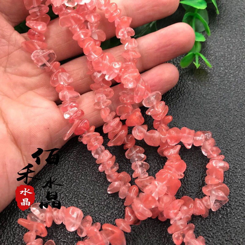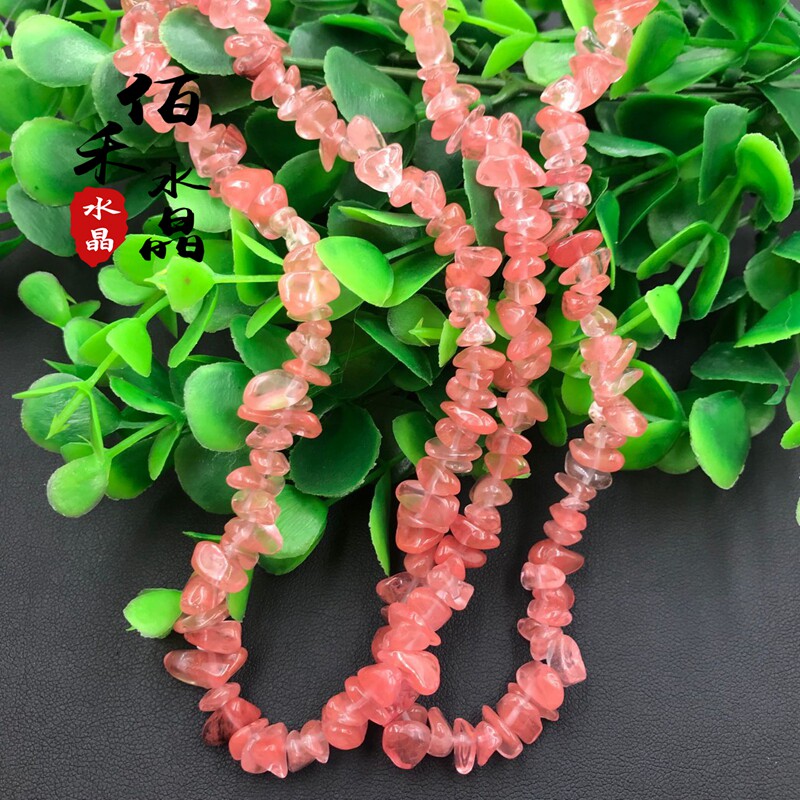 Natural watermelon crystal crystal gravel with hole red watermelon semi-finished gravel diy necklace sweater chain accessories