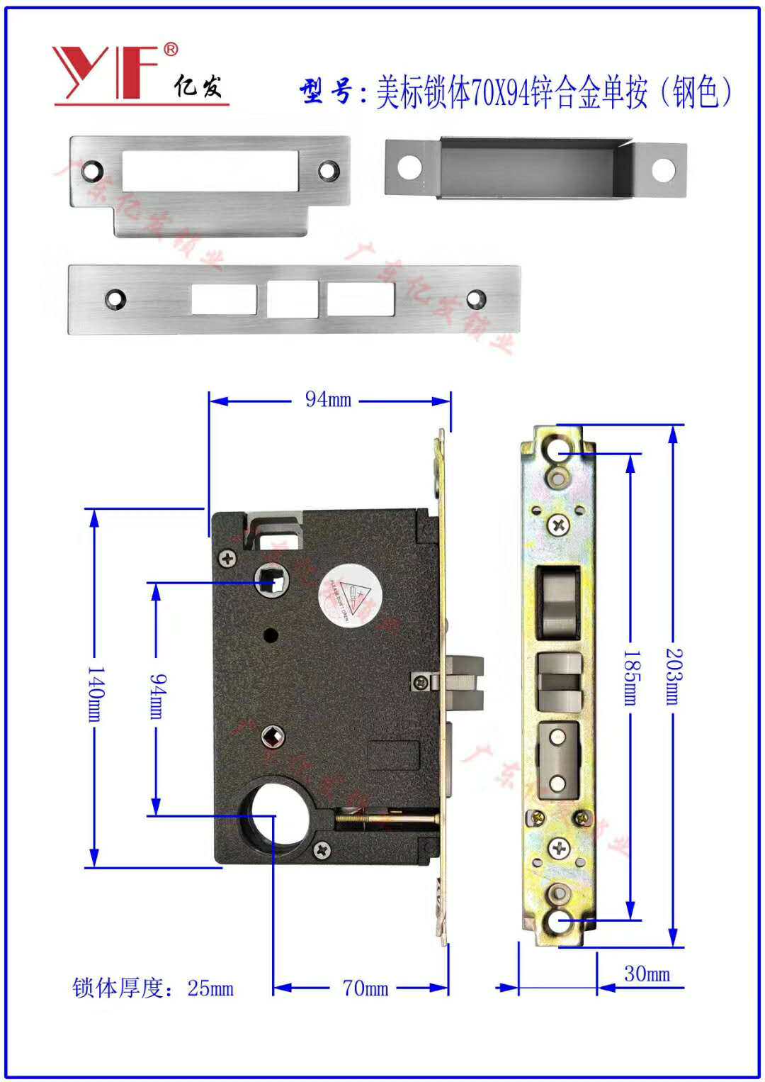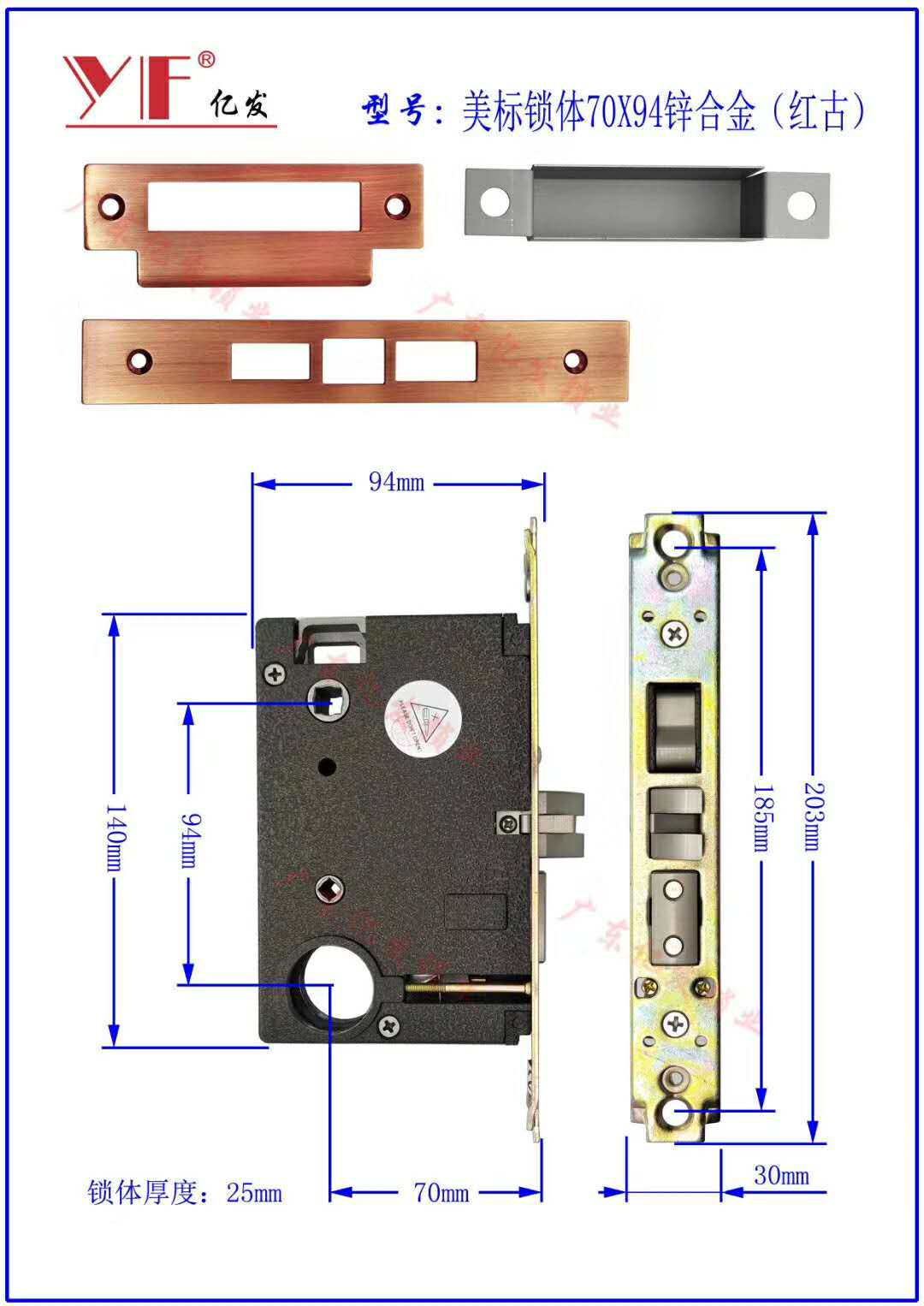 70mm * 94mm zinc alloy door panel hand lock lock accessories American door lock lock body without key universal