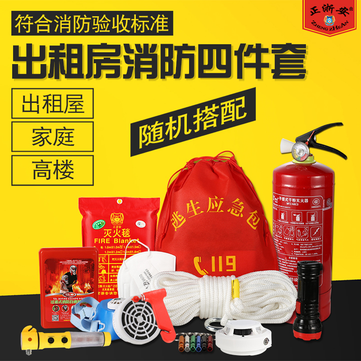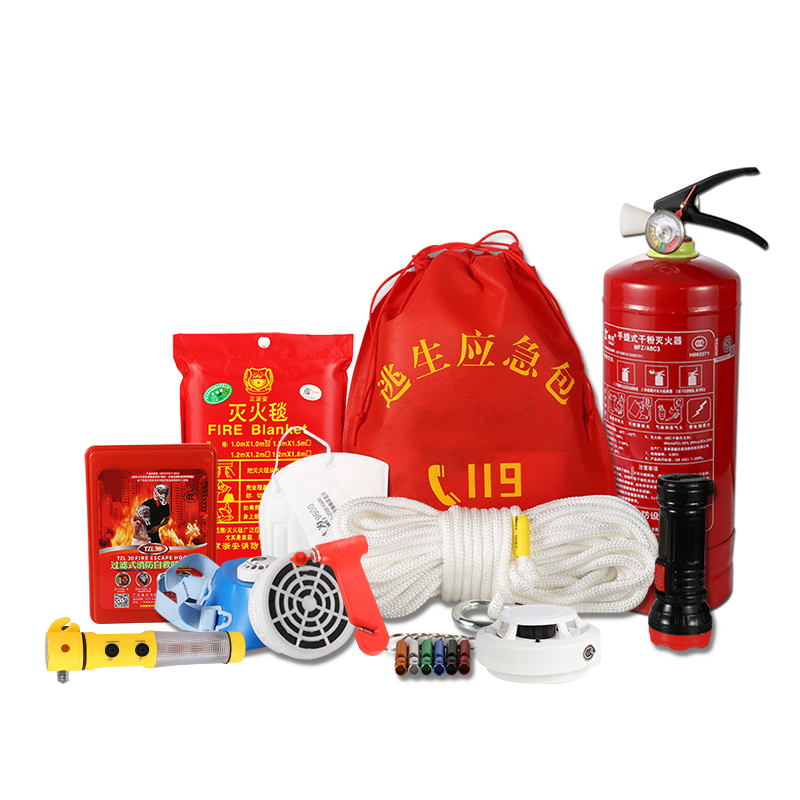 Fire Emergency Bag (empty bag) Emergency whistling (color random) Safe exit wall stickup with single message direction Silicone Gas Mask Torch 1 m * 1 m Fire blanket Smoke sirens
