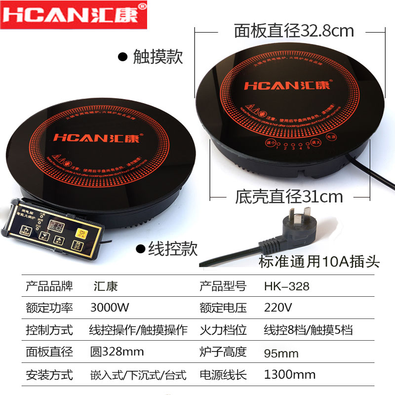 Huikang hot pot induction cooker Round commercial embedded sunken 3000W328 high-power hot pot special induction cooker