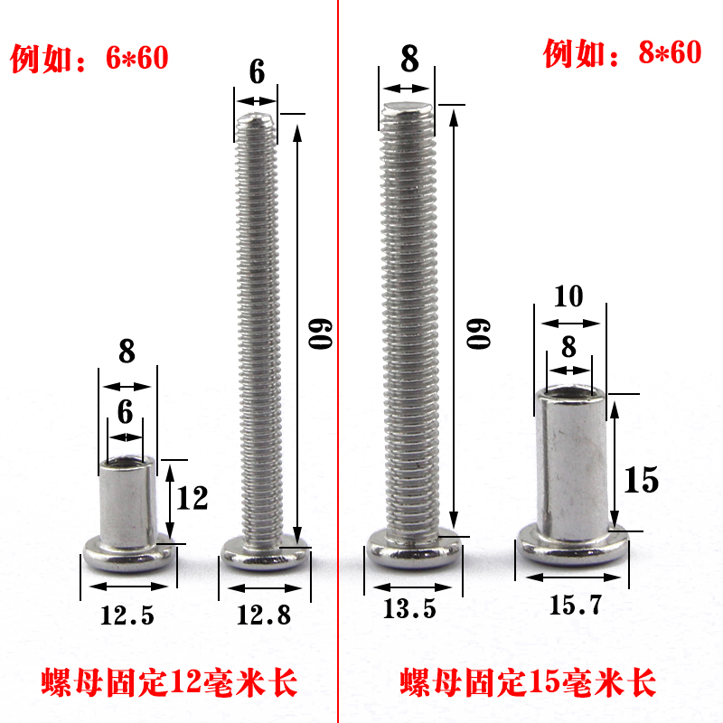 304 stainless steel large flat head inner six pairs of knocks splints to lock screws Children's furniture beds Connecting nail bolts M6M8