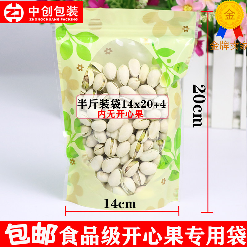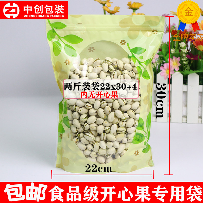 One catty fit pistachio tricolor self-supporting bag with two catties of electric commercial self-printed nut bagging upscale