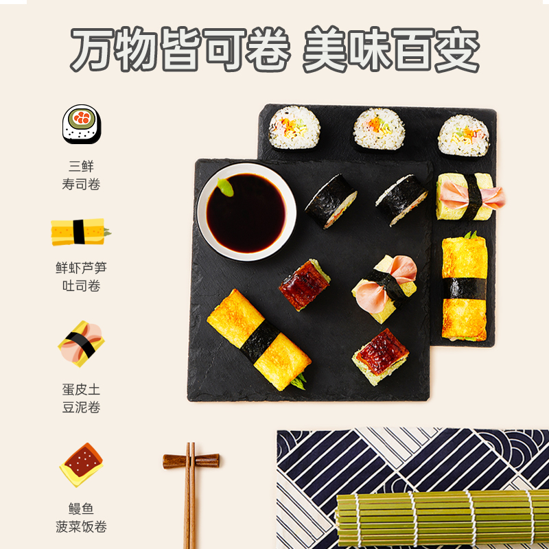 10 pieces of seaweed + sushi curtain 24cm (send sushi radish 200g + sushi vinegar 100ml)