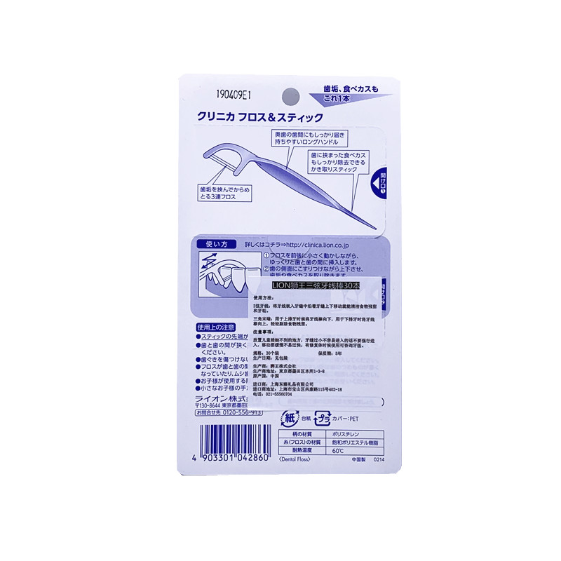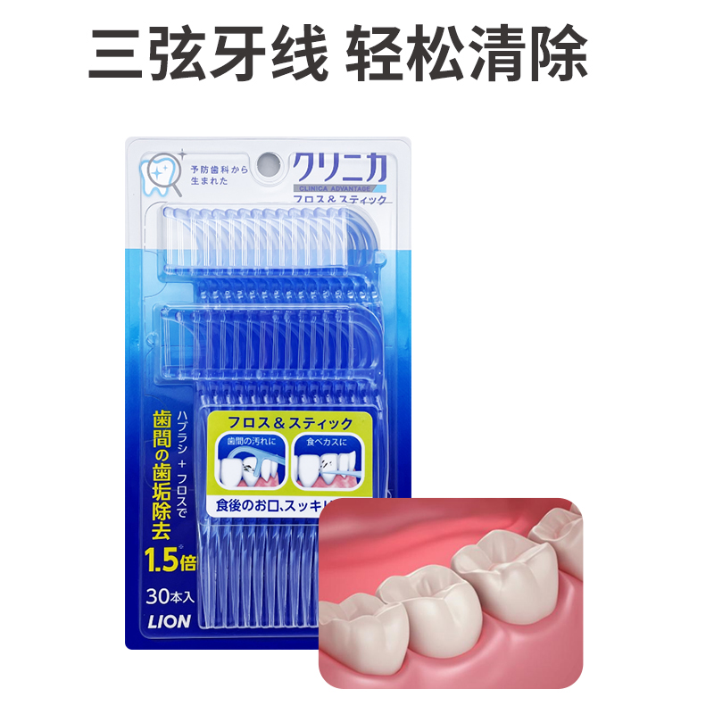 Japan Lion CLINICA deep dental cleaning line stick 3-string flat line removes tartar, plaque, food debris and moth prevention