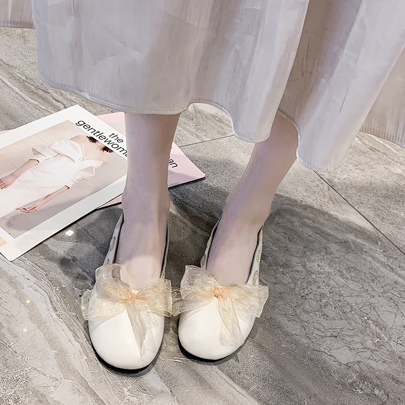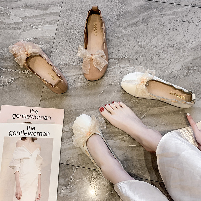 2022 Spring Summer New Korean version Pregnant Woman Flat Bottom Single Shoes Woman Fashion 100 Hitch Butterfly Knots Bean Shoes Soft Bottom Grandma Shoes