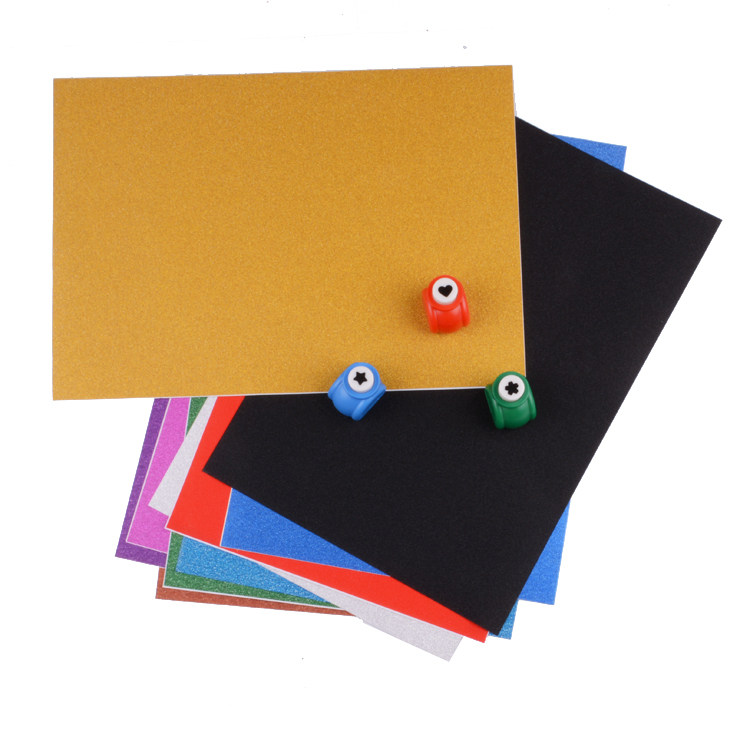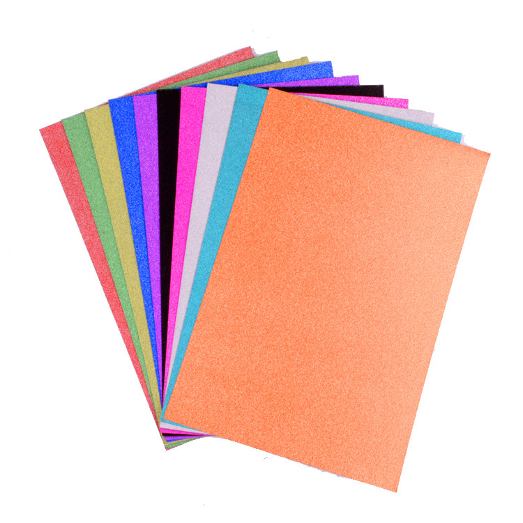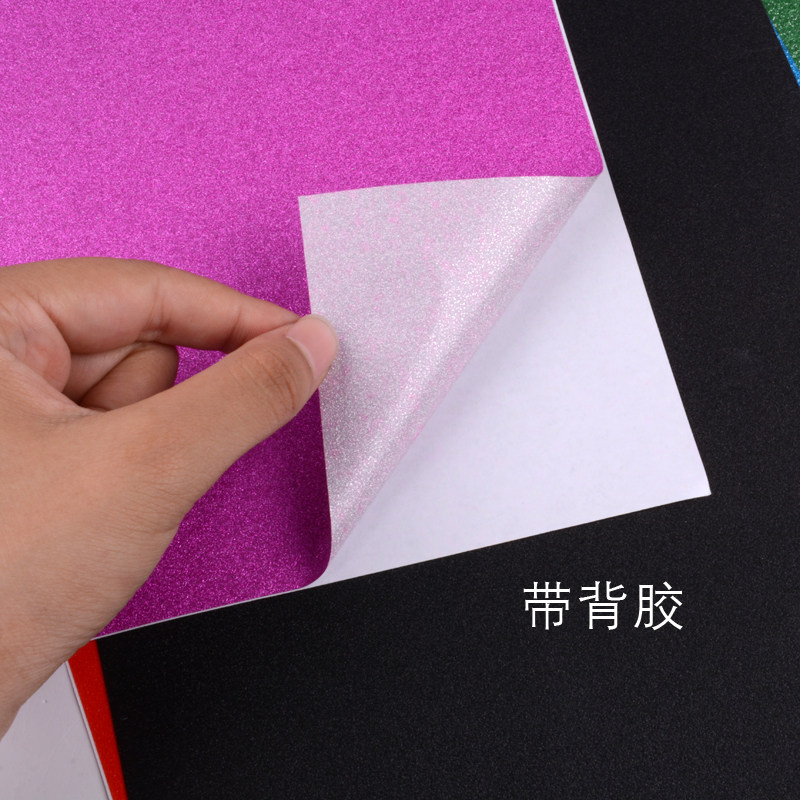 10 sheets of glitter paper with glue, 10 sheets of glitter paper without adhesive, 10 sheets of sapphire blue glitter paper with glue, 10 sheets of orange glitter paper with glue, 10 sheets of red glitter paper, with glue