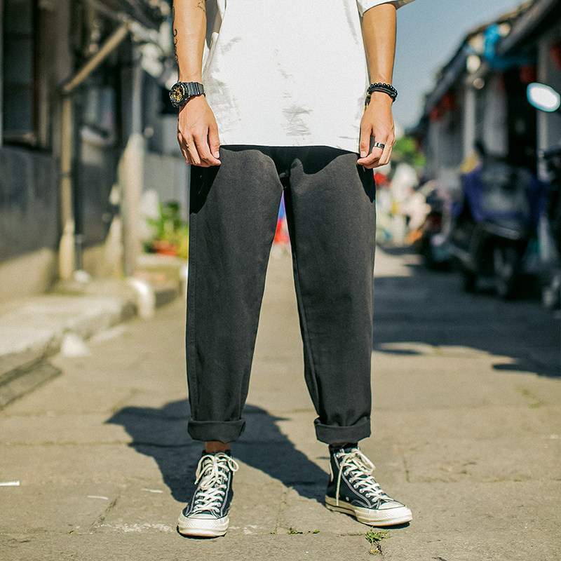 The whole village 2020 solid color simple tide brand wide-leg pants men's loose straight Japanese hip-hop leisure sports trend