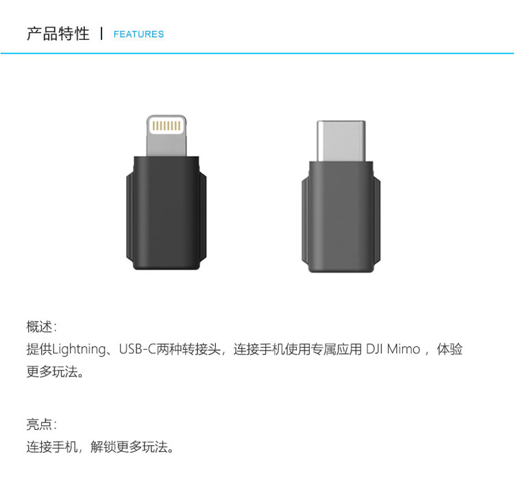 (DJI Original) Apple Lightning Connector (DJI Original) Android Type-c Connector (DJI Original) Microphone Audio Connector Bohang-Apple Light