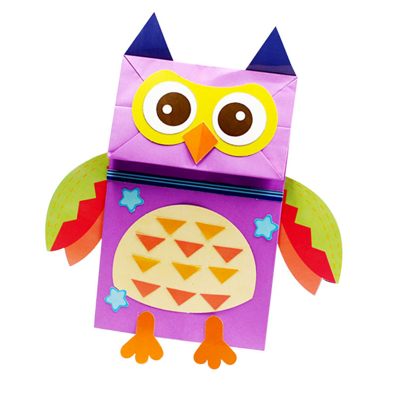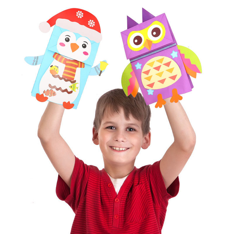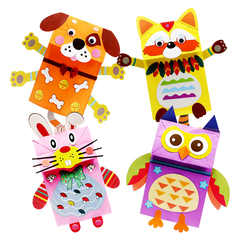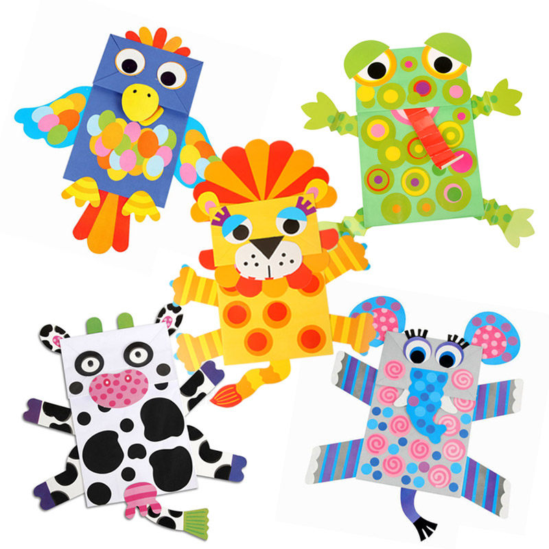 Children's hand paper bag paint puppet paper doll Diy paste cartoon animal creative making materials pack