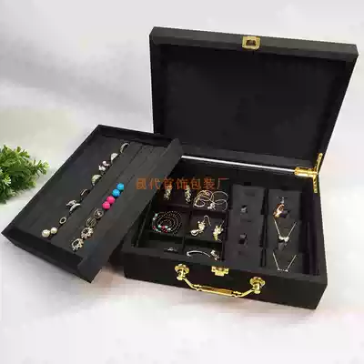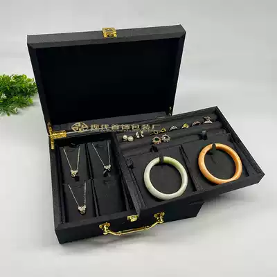 Bracelet box high-grade ring pendant necklace jewelry storage box cloth plaid double jewelry box with portable large capacity