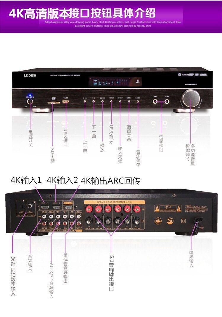 Power Amplifier 4K Decode High-definition 5 1 Home Cinema High Power Power Amplifier No Distortion Music K Song Bluetooth Surround Sound